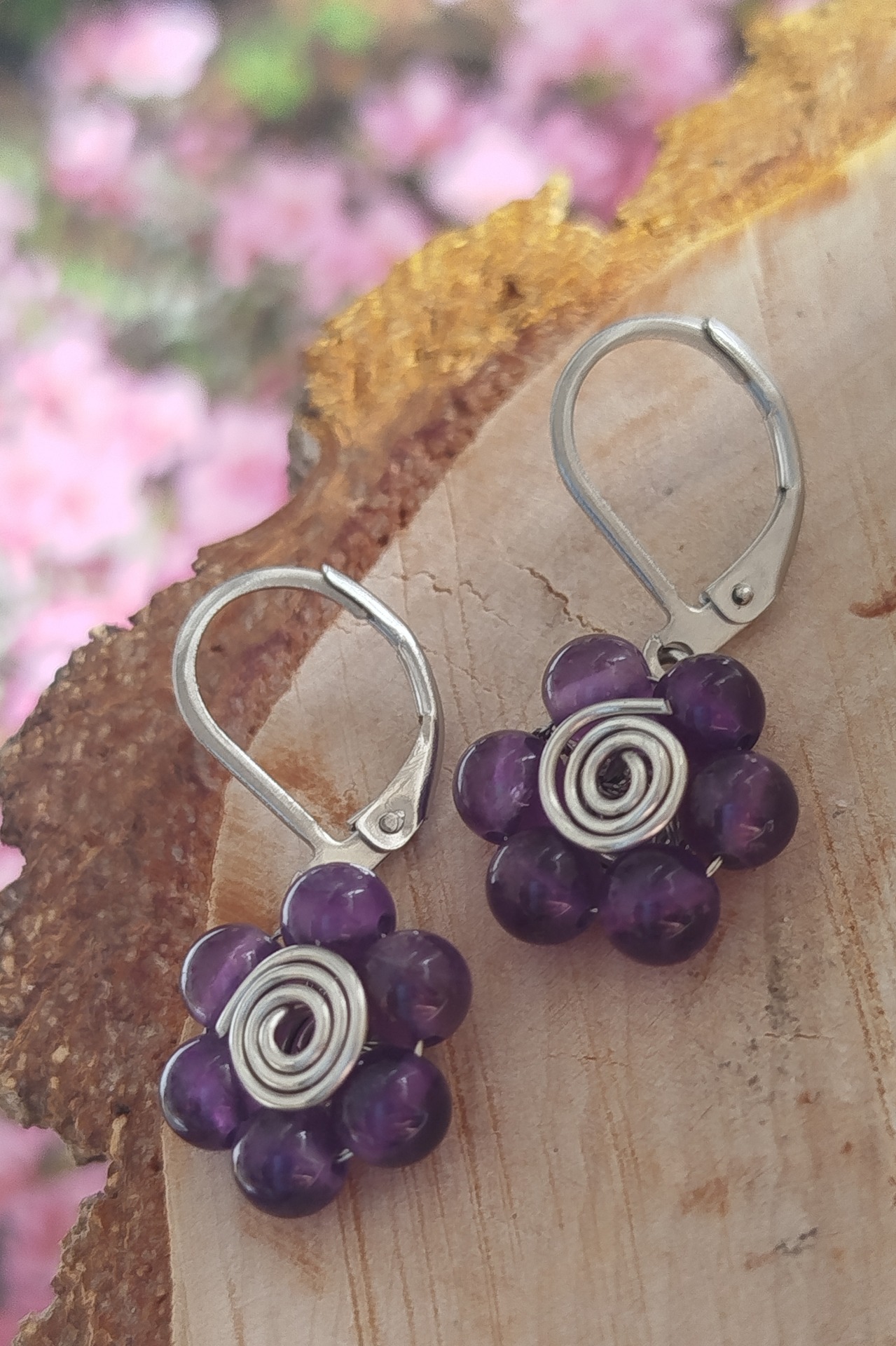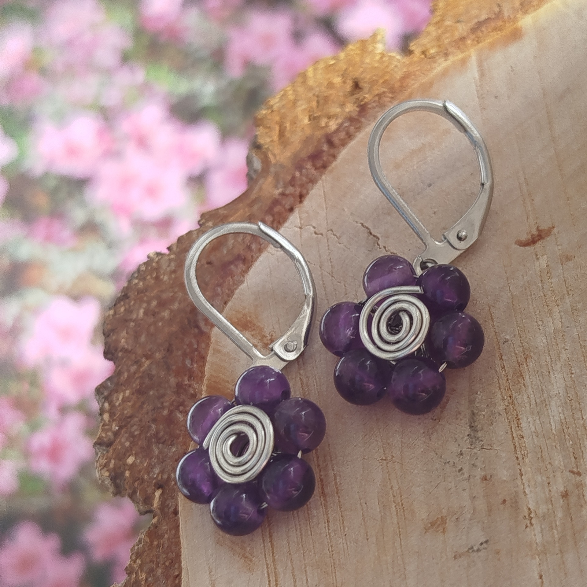 Materiál: Náušnice z drátu z nerezové oceli 316L a přírodní ametystu.
