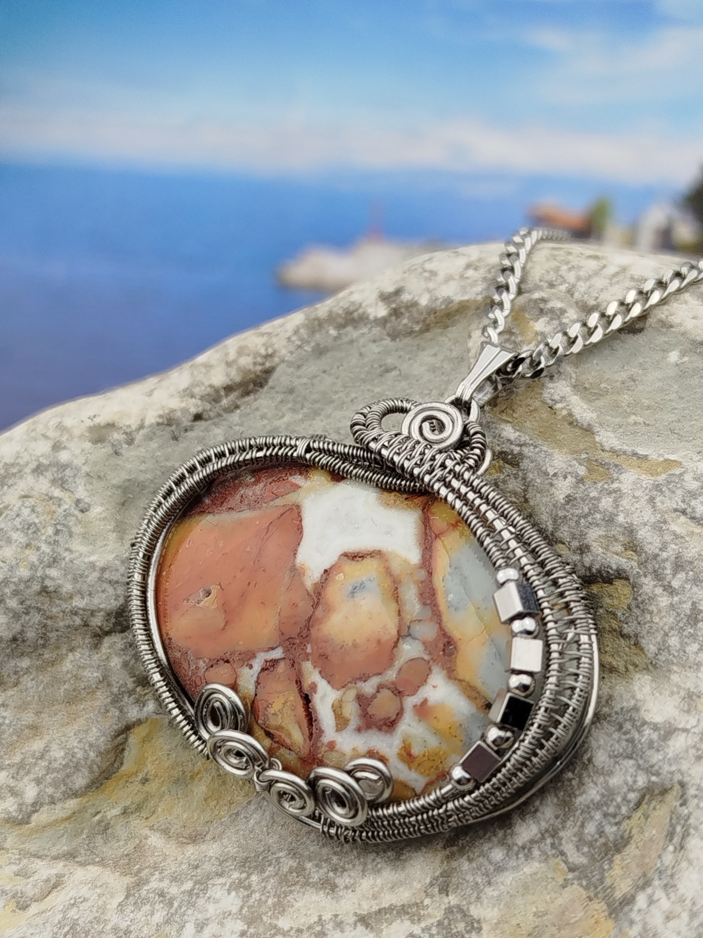 Materiál: Přívěsek z drátu z nerezové oceli 316L a přírodního jaspisu.